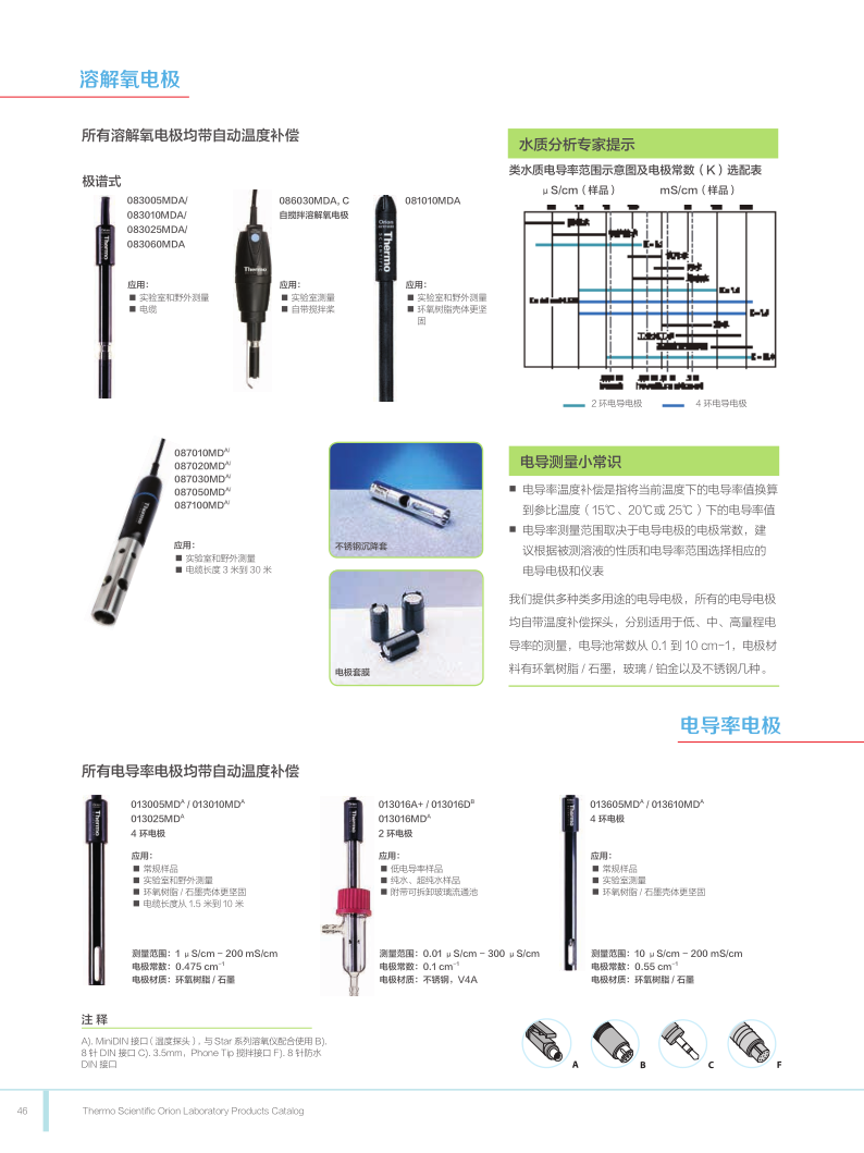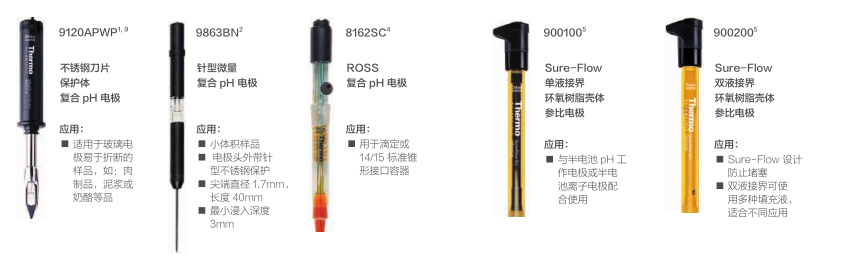 Thermo Orion 奧立龍電極-pH 電極、參比電極、溫度補償電極、溶解氧電極、氧化還原電極、離子選擇電極
